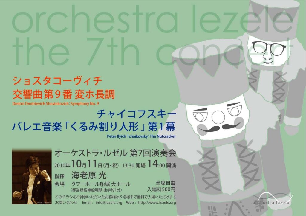 第7回演奏会 2010年10月11日(月・祝) タワーホール船堀大ホール 指揮:海老原 光 ショスタコーヴィチ / 交響曲第9番変ホ長調 チャイコフスキー / バレエ音楽「くるみ割り人形」より第1幕 (アンコール:「くるみ割り人形」第2幕よりパ・ド・ドゥ)
